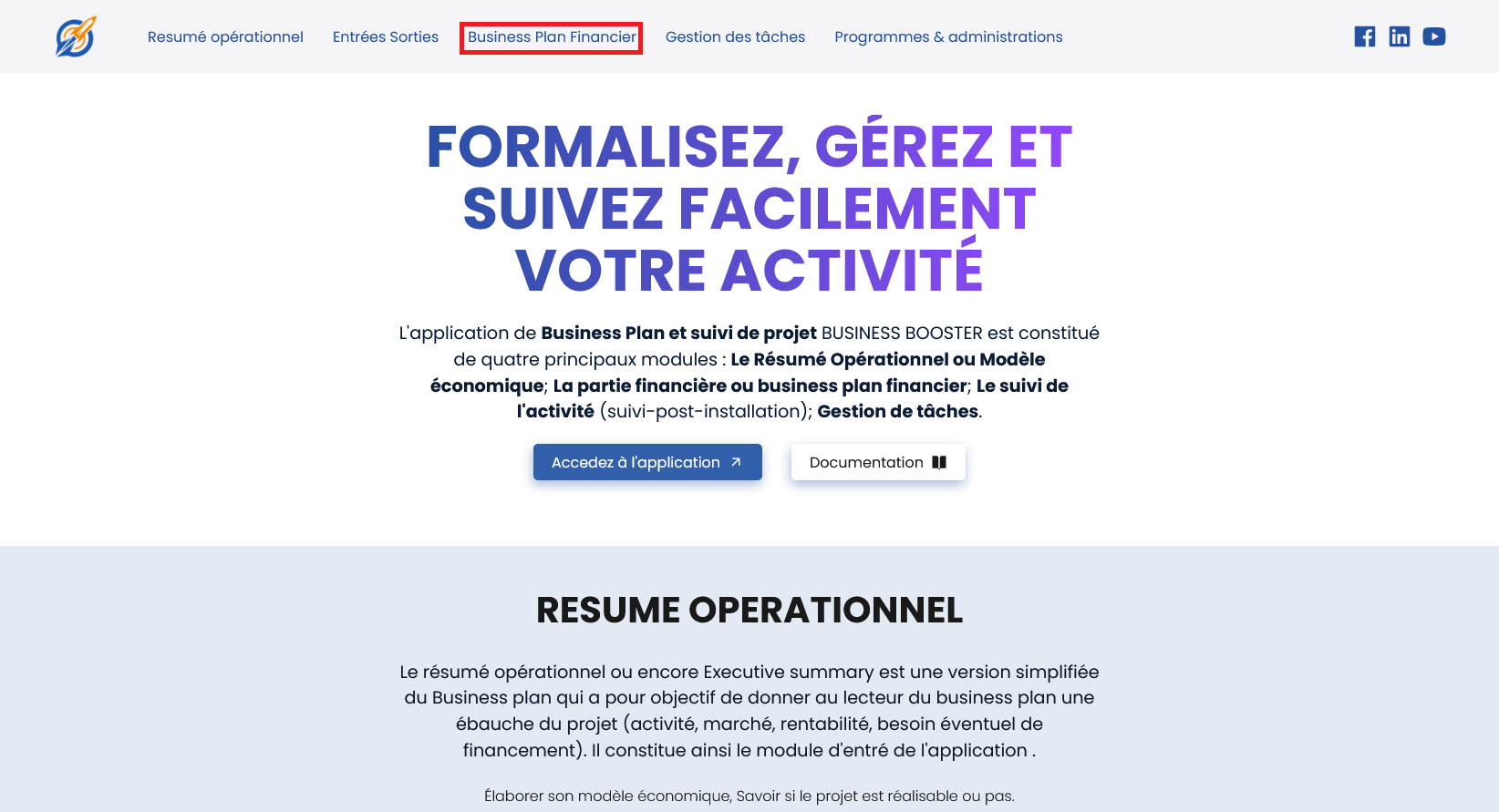 1- Sélectionnez l’onglet «Business plan Financier» dans le menu horizontale
