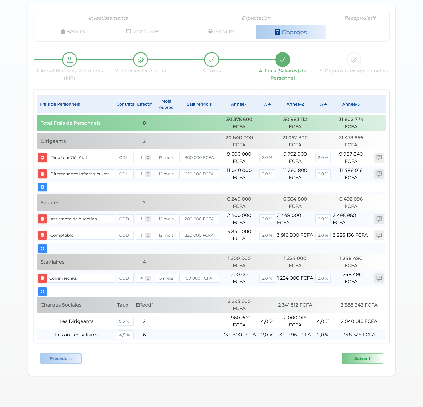 Dans cette section, vous devez renseigner les salaires liés à l’ensemble du personnel.