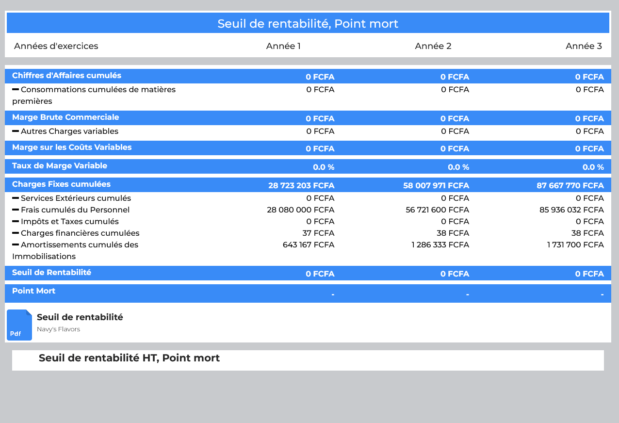 Exemple : si vous vendez une chaussure à 10.000 FCFA, combien coûte-t-elle chez le grossiste ? C’est ce montant qui constitue la part de charges variables à renseigner.
