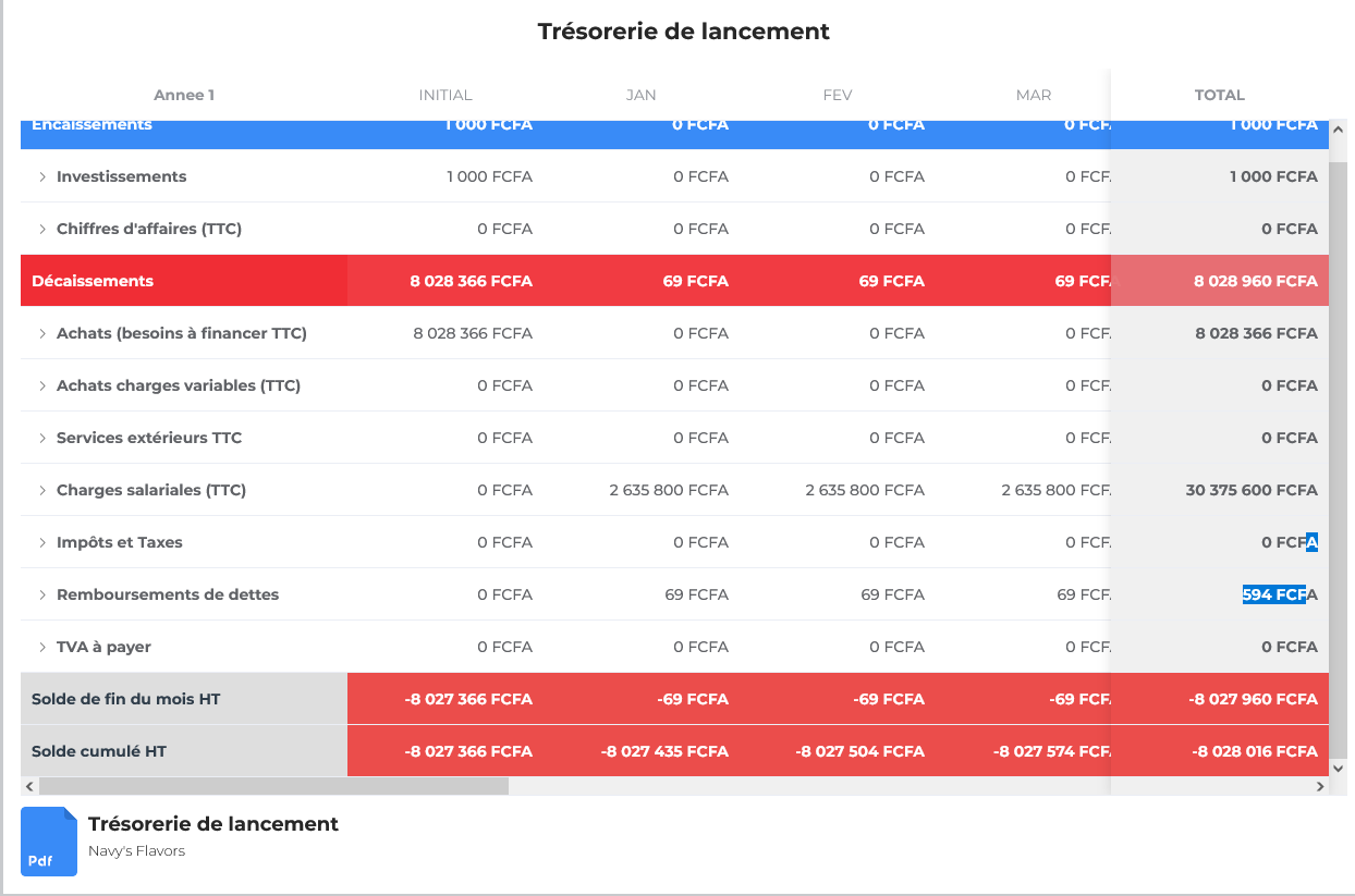 | Gestion de la trésorerie | Solde cumulé année 1 | Solde exercice initial + Solde exercice année 1 |