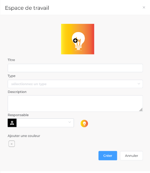 Le champ Ajouter une couleur une option pour ajouter une couleur spécifique à l'espace de travail. En cochant cette case, vous pourrez probablement choisir une couleur qui sera associée visuellement à cet espace.