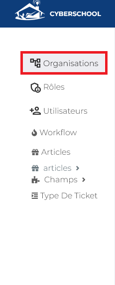 Dans le menu latéral gauche, cliquez sur Organisations.
