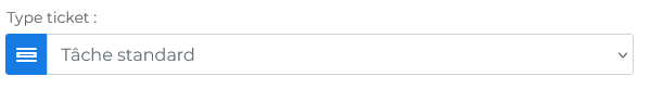 Utilisez le menu déroulant à côté de "Type ticket" pour choisir le type de ticket (par exemple, "Tâche standard", “Courrier entrant”, “Courrier sortant”, “Demande”, “Réservation”).